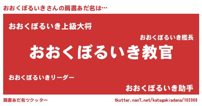 | 男性向けラノベタイトル風あだ名 | 『この素晴らしい世界におおくぼるいきを!』 |