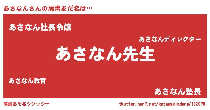 | ファンタジー風あだ名 | 『アサディッシュ』『アサフェル』 |