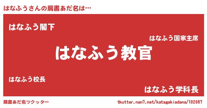 | 男性向けラノベタイトル風あだ名 | 『この素晴らしい世界にはなふうを!』 |