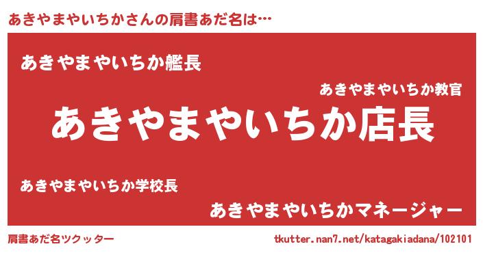 | 男性向けラノベタイトル風あだ名 | 『あきやまやいちかの憂鬱』 |