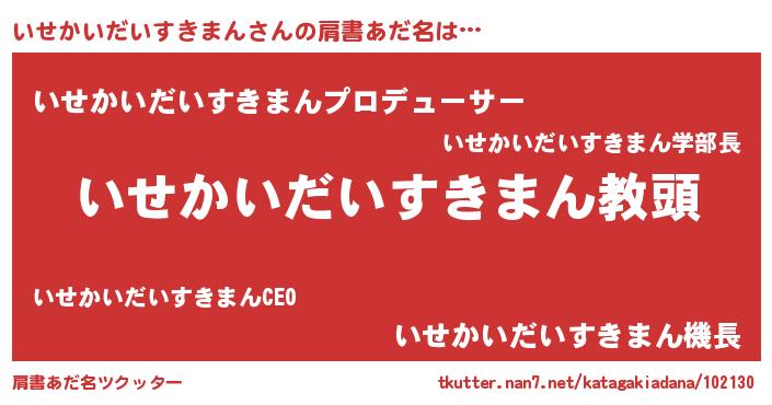 | ヘコむあだ名 | 『いせかいだいすきまん(笑)』『いせもー』 |