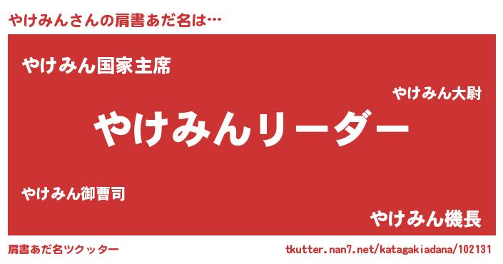 | 意味不明あだ名 | 『とにかく怪しいやけみん』 |