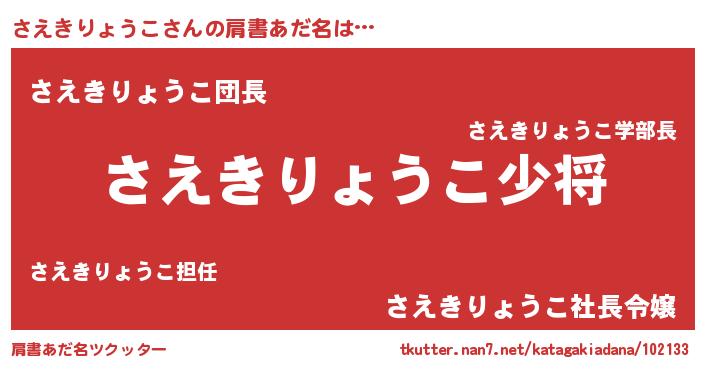 | ポケモン風あだ名 | 『サエキング』『ヒサエキリョウコ』 |