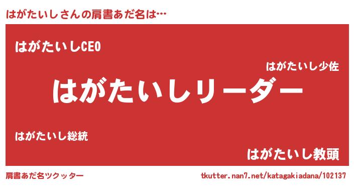 | ヒーロー風カッコイイあだ名 | 『炎刃騎士ハガ』『スーパーハガタイシ』 |