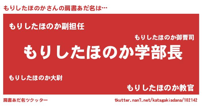 | 女子向けラノベタイトル風あだ名 | 『もりしたほのか夫妻のなれそめ』 |