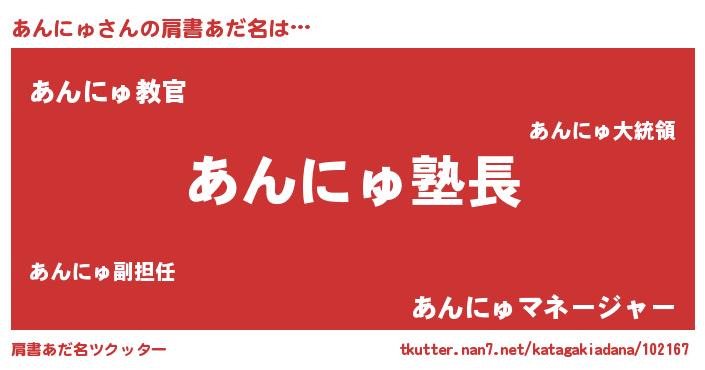 | 欧米人風あだ名 | 『ウサインあんにゅ』 |