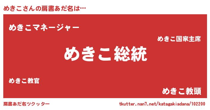 | 意味不明あだ名 | 『自称めきこ』『永久保存めきこ』 |