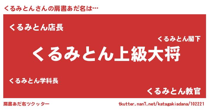| 男性向けラノベタイトル風あだ名 | 『転生したらくるみとんだった件』 |