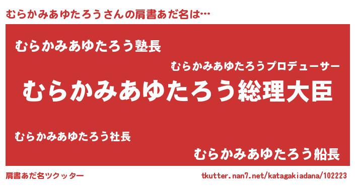 | 欧米人風あだ名 | 『むらかみあゆたろうクリステル』 |