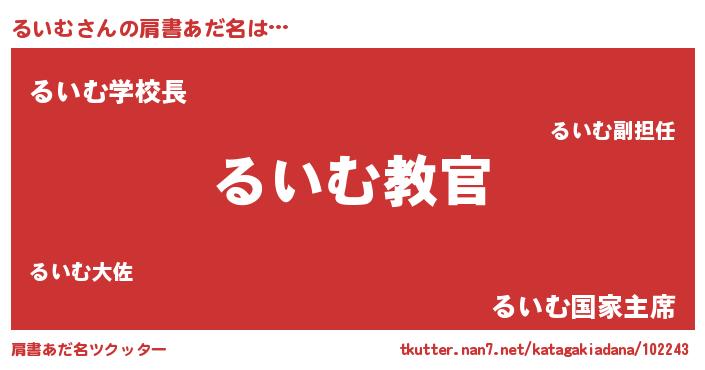| 男性向けラノベタイトル風あだ名 | 『この素晴らしい世界にるいむを!』 |