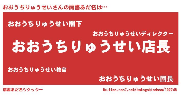 | 男性向けラノベタイトル風あだ名 | 『おおうちりゅうせいの憂鬱』 |