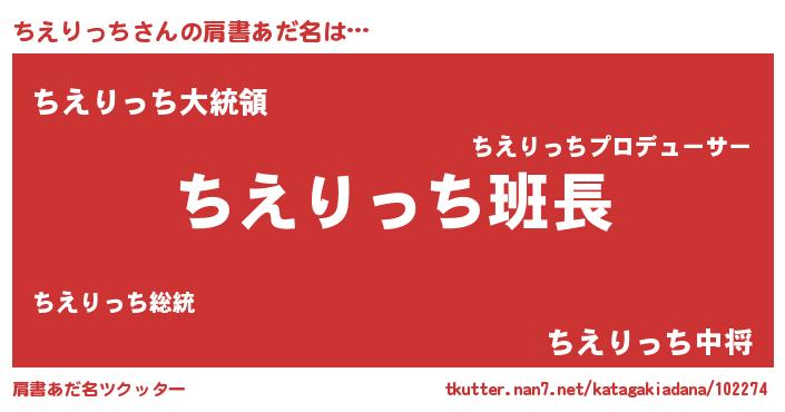 | 女子向けラノベタイトル風あだ名 | 『ちえりっちの卵を拾いまして』 |