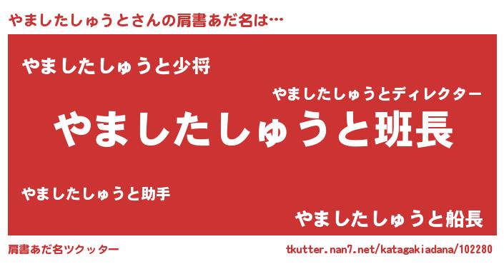 | 胡散臭い通販商品みたいなあだ名 | 『信頼と実績のネックレス…その名も「やましたしゅうと」』 |