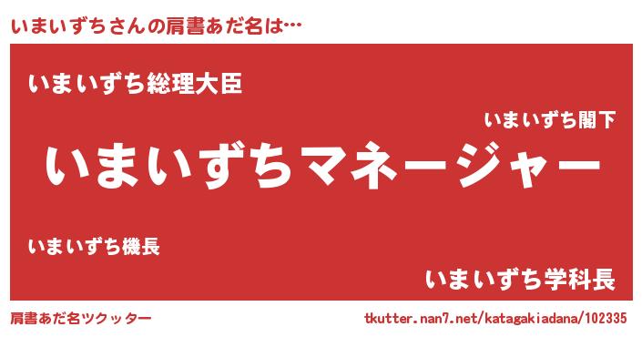 | 男性向けラノベタイトル風あだ名 | 『いまいずちに滅ぼされるだけの簡単なお仕事です』 |