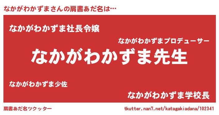 | 女子向けラノベタイトル風あだ名 | 『なかがわかずまの契約王妃』 |