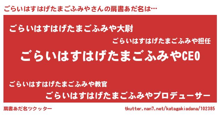 | 男性向けラノベタイトル風あだ名 | 『ごらいはすはげたまごふみやの憂鬱』 |