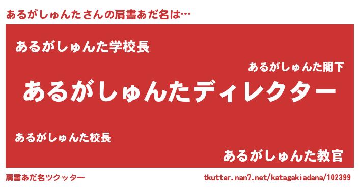 | 男性向けラノベタイトル風あだ名 | 『あるがしゅんたに滅ぼされるだけの簡単なお仕事です』 |