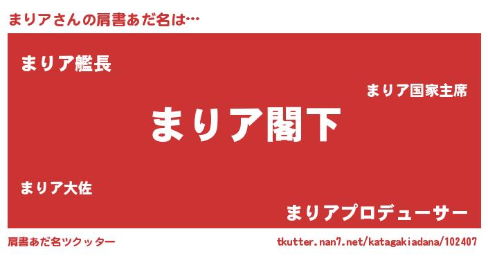 | 女子向けラノベタイトル風あだ名 | 『まりアなんてお断りですっ。』 |