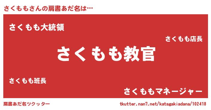 | 男性向けラノベタイトル風あだ名 | 『この素晴らしい世界にさくももを!』 |
