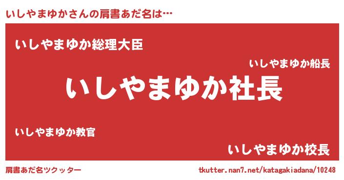 | ヒーロー風カッコイイあだ名 | 『スーパーイシヤマユカ』『仮面イシダー』 |