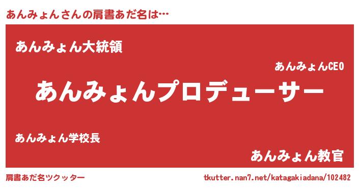 | 男性向けラノベタイトル風あだ名 | 『あんみょんに滅ぼされるだけの簡単なお仕事です』 |