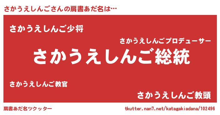 | 意味不明あだ名 | 『自称さかうえしんご』 |