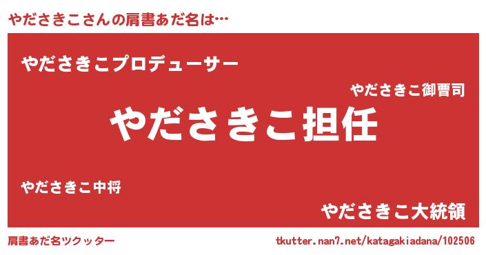| 男性向けラノベタイトル風あだ名 | 『やださきこという概念が存在しない退屈な世界 』 |