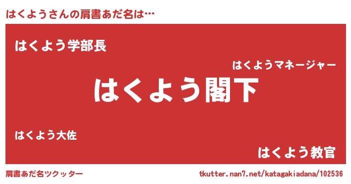 | ヒーロー風カッコイイあだ名 | 『最強戦士ハクヨウ』『仮面ハクダー』 |