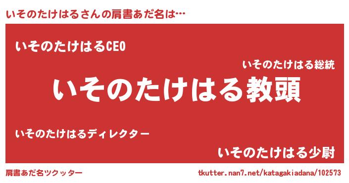 | 意味不明あだ名 | 『永久保存いそのたけはる』 |