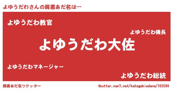 | ヒーロー風カッコイイあだ名 | 『仮面ヨユダー』『最強戦士ヨユウダワ』 |