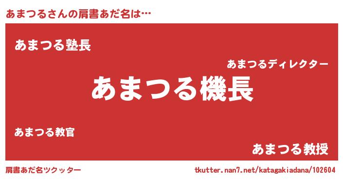 | 男性向けラノベタイトル風あだ名 | 『うちのあまつるが世界を掌握している!』 |