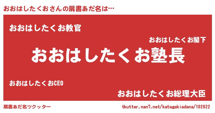 | 女子向けラノベタイトル風あだ名 | 『おおはしたくおは平凡を望む』 |