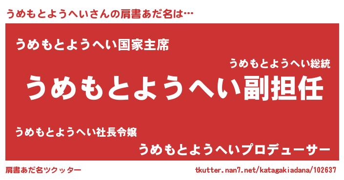 | ヘコむあだ名 | 『うめもとようへい(震え声)』『豆乳』 |