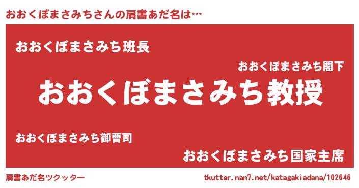 | ポケモン風あだ名 | 『オックウザ』『ヒオオクボマサミチ』 |