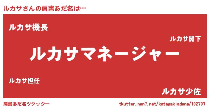 | 男性向けラノベタイトル風あだ名 | 『ルカサに滅ぼされるだけの簡単なお仕事です』 |