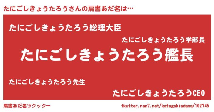 | 男性向けラノベタイトル風あだ名 | 『緋弾のタニゴシキョウタロウ』 |