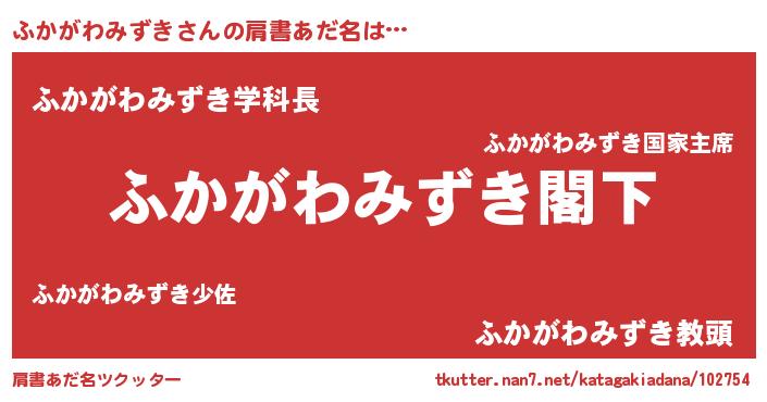| 意味不明あだ名 | 『自称ふかがわみずき』 |