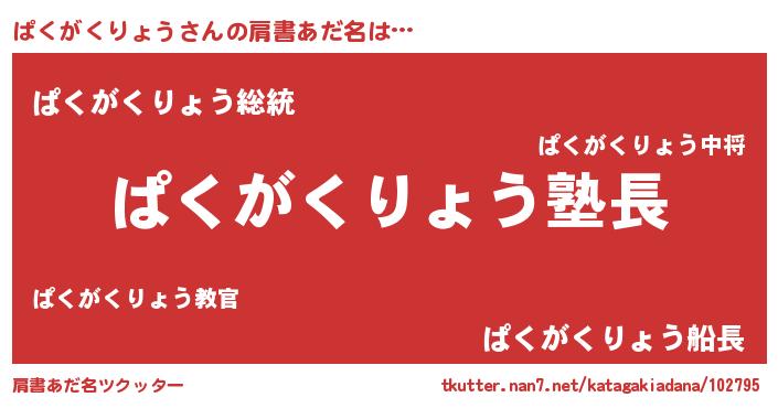| 女子向けラノベタイトル風あだ名 | 『ぱくがくりょうは平凡を望む』 |
