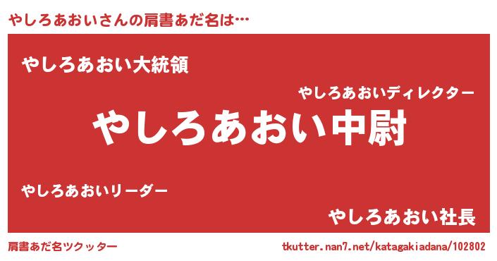| ヒーロー風カッコイイあだ名 | 『ウルトラやしろあおいマン』 |