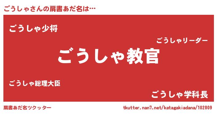 | 男性向けラノベタイトル風あだ名 | 『この素晴らしい世界にごうしゃを!』 |