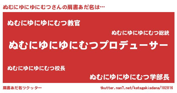 | 男性向けラノベタイトル風あだ名 | 『ぬむにゆにゆにむつに滅ぼされるだけの簡単なお仕事です』 |