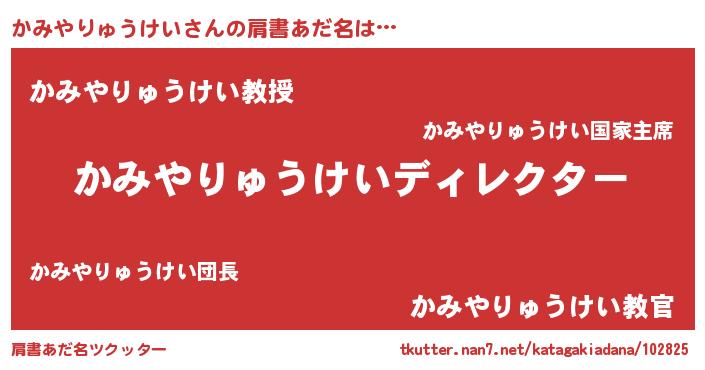 | 男性向けラノベタイトル風あだ名 | 『かみやりゅうけいに滅ぼされるだけの簡単なお仕事です』 |