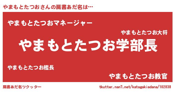 | 男性向けラノベタイトル風あだ名 | 『おまえをオタクにしてやるから、俺をやまもとたつおにしてくれ! 』 |