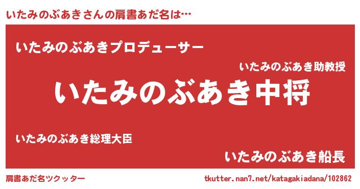 | 男性向けラノベタイトル風あだ名 | 『転生したらいたみのぶあきだった件』 |