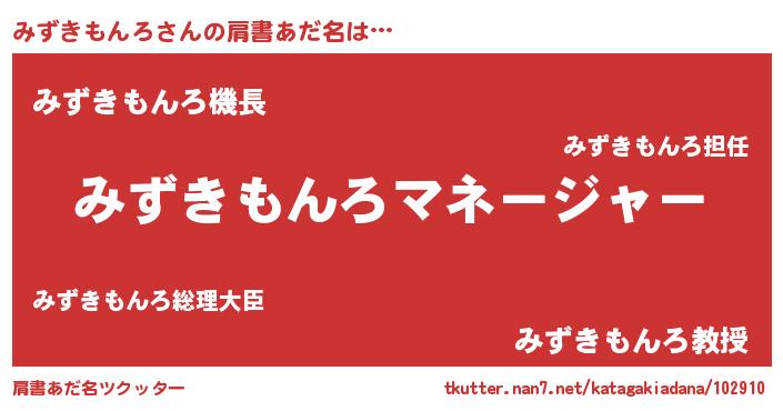 | ヘコむあだ名 | 『みずきもんろ(小並感)』『なまこ酢』 |