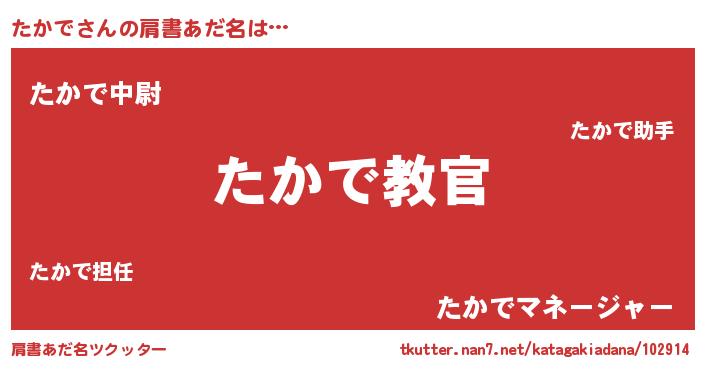 | ヒーロー風カッコイイあだ名 | 『仮面タカダー』『正義の使者たかで』 |