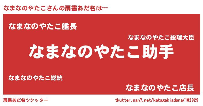 | ヒーロー風カッコイイあだ名 | 『正義の使者なまなのやたこ』 |