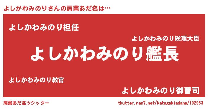| 男性向けラノベタイトル風あだ名 | 『うちのよしかわみのりが世界を掌握している!』 |
