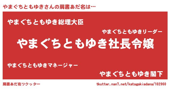 | 女子向けラノベタイトル風あだ名 | 『(仮)やまぐちともゆきのやんごとなき事情』 |