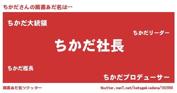 | ヒーロー風カッコイイあだ名 | 『スーパーチカダ』『ウルトラちかだマン』 |